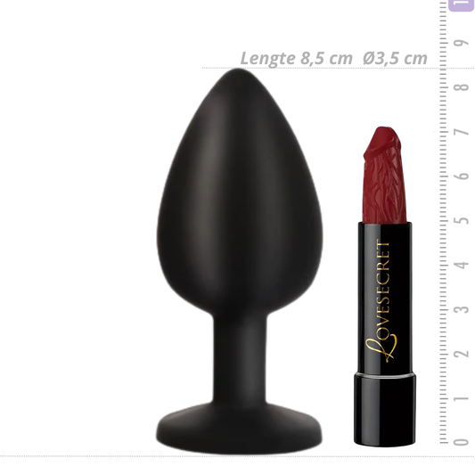 Zwarte Siliconen Buttplug met Roze Kristal Lengte: 8,5cm Ø 3.5cm