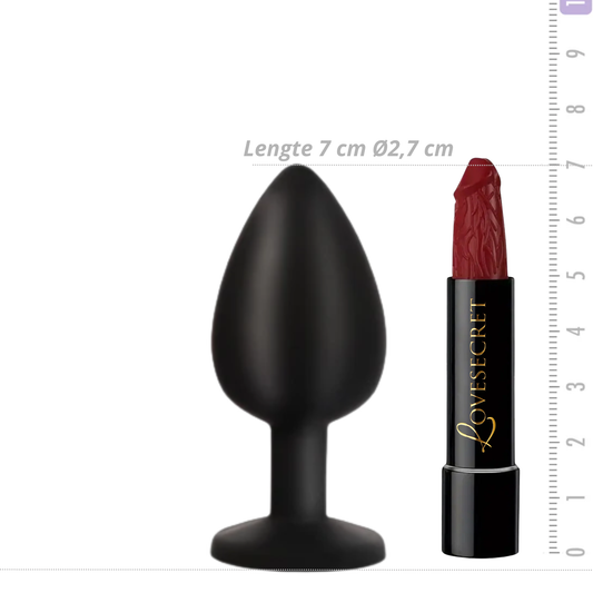 Zwarte Siliconen Buttplug met Roze Kristal Lengte: 7cm Ø 2.7cm