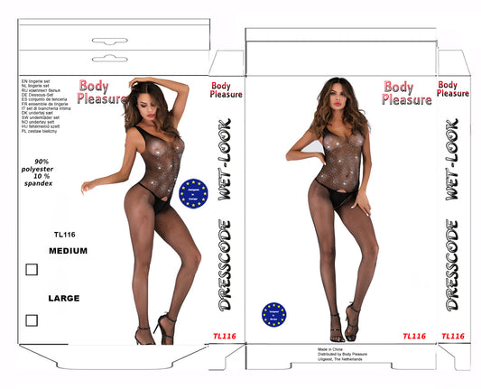 Body Pleasure Sexy Glitter Bodystocking Lingerie – M/L – Zwart