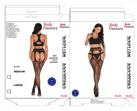 Body Pleasure Sexy Body Stocking Lingerie – M/L – Zwart - Model 6055