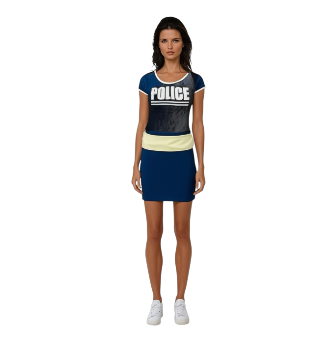 Sexy Politie Kostuum – Blauwe Jurk met Gele Accenten en Pet